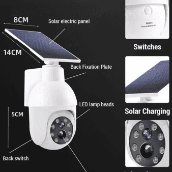 The realistic-looking simulation surveillance camera is enough to scare away criminals and protect your property safety. Whether it is day or night. the street light can play an excellent deterrent role and provide all-round protection.