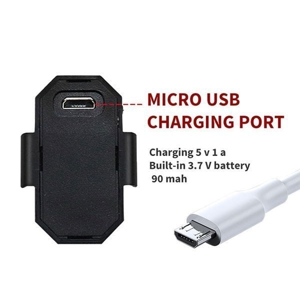 USB Rechargeable Design: Built-in 90mAh battery. only takes about 15 minutes for a fully charged. the light can work up to 8 hours.